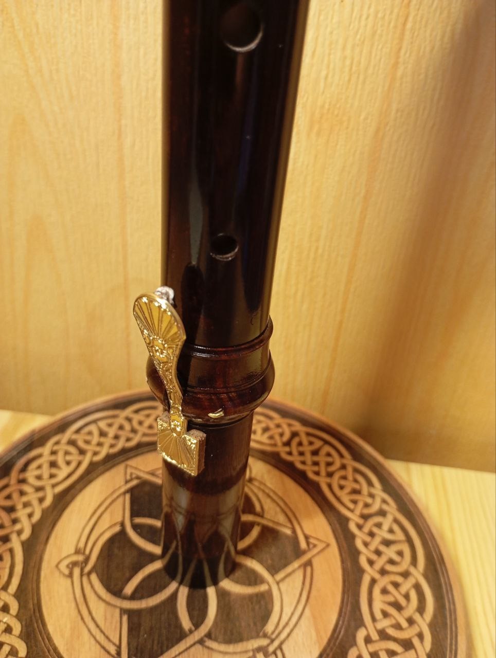 Buis teinté avec vernis gomme laque, clé gravée.
