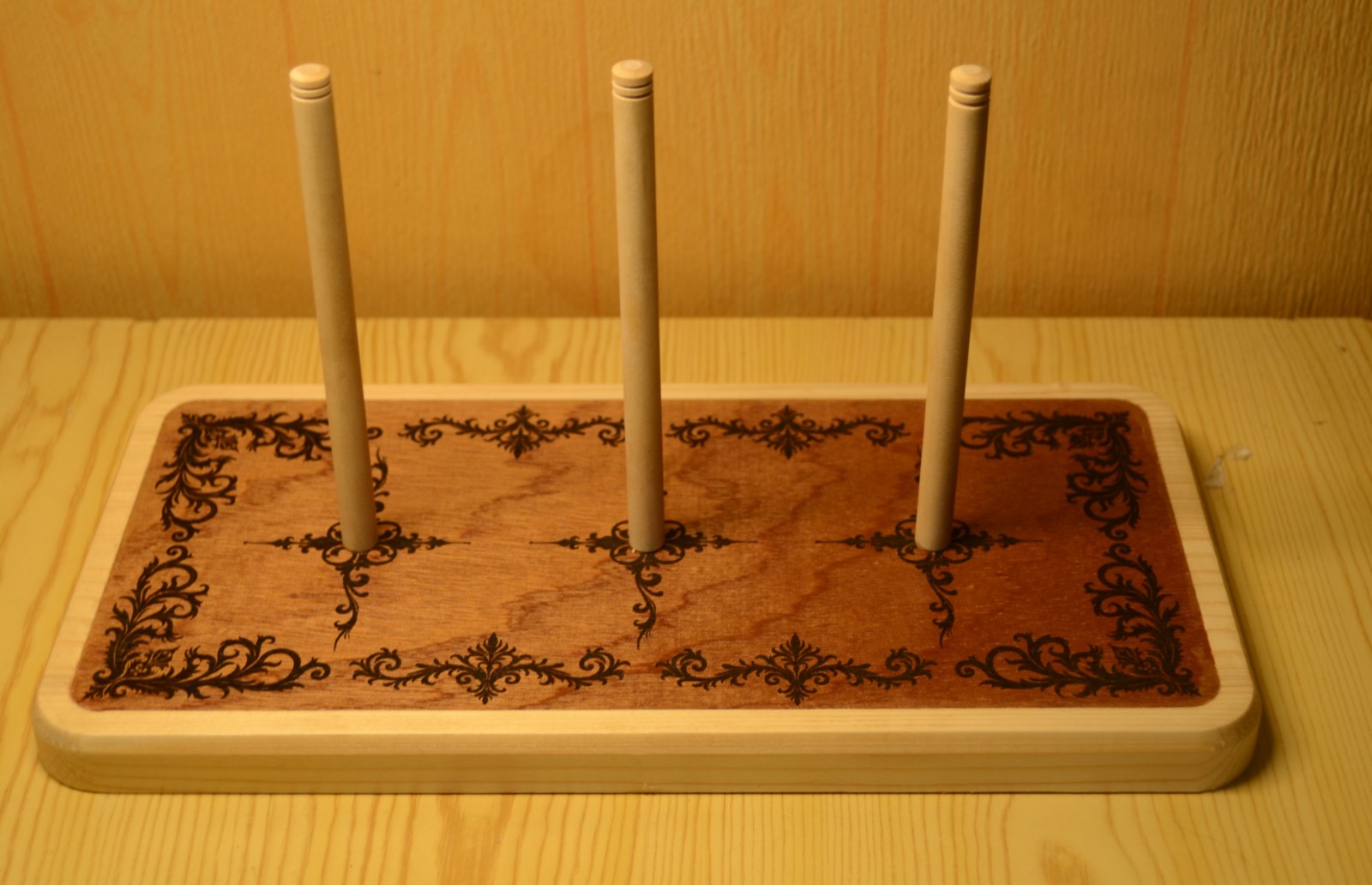 Ce support en bois a été spécialement conçu pour accueillir un traverso baroque démonté, en alliant fonctionnalité, esthétique et respect de l’instrument.